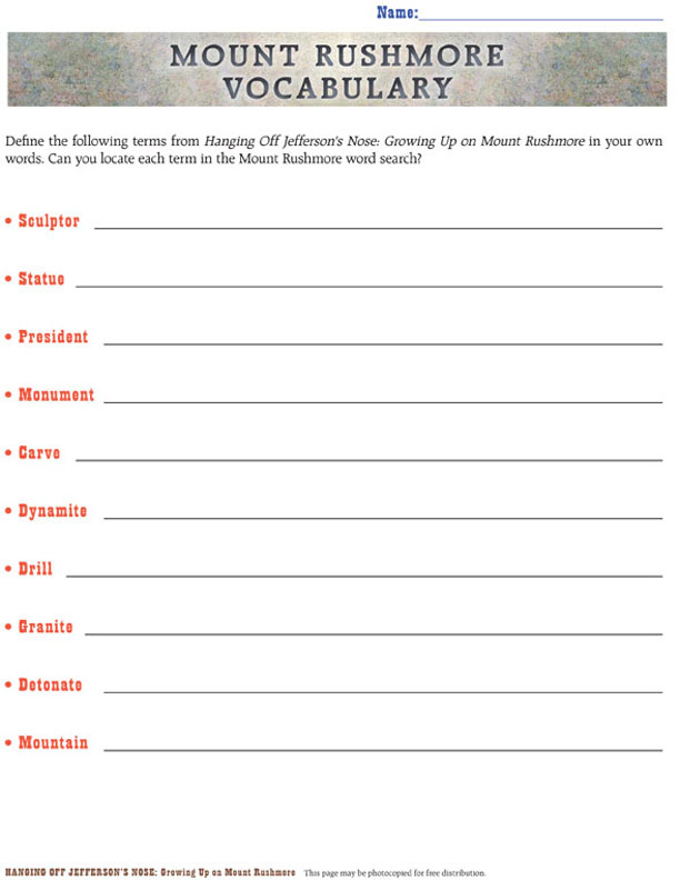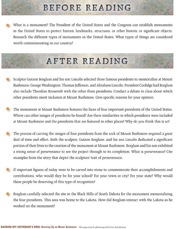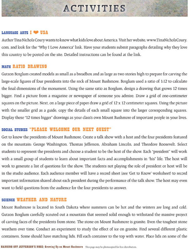 Hanging Off Jefferson's Nose Curriculum Guide